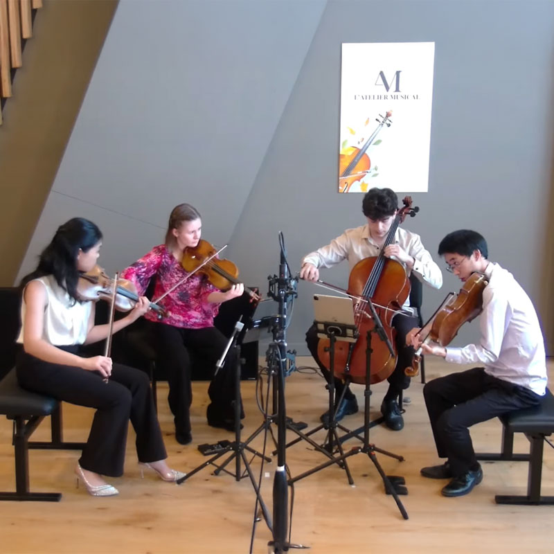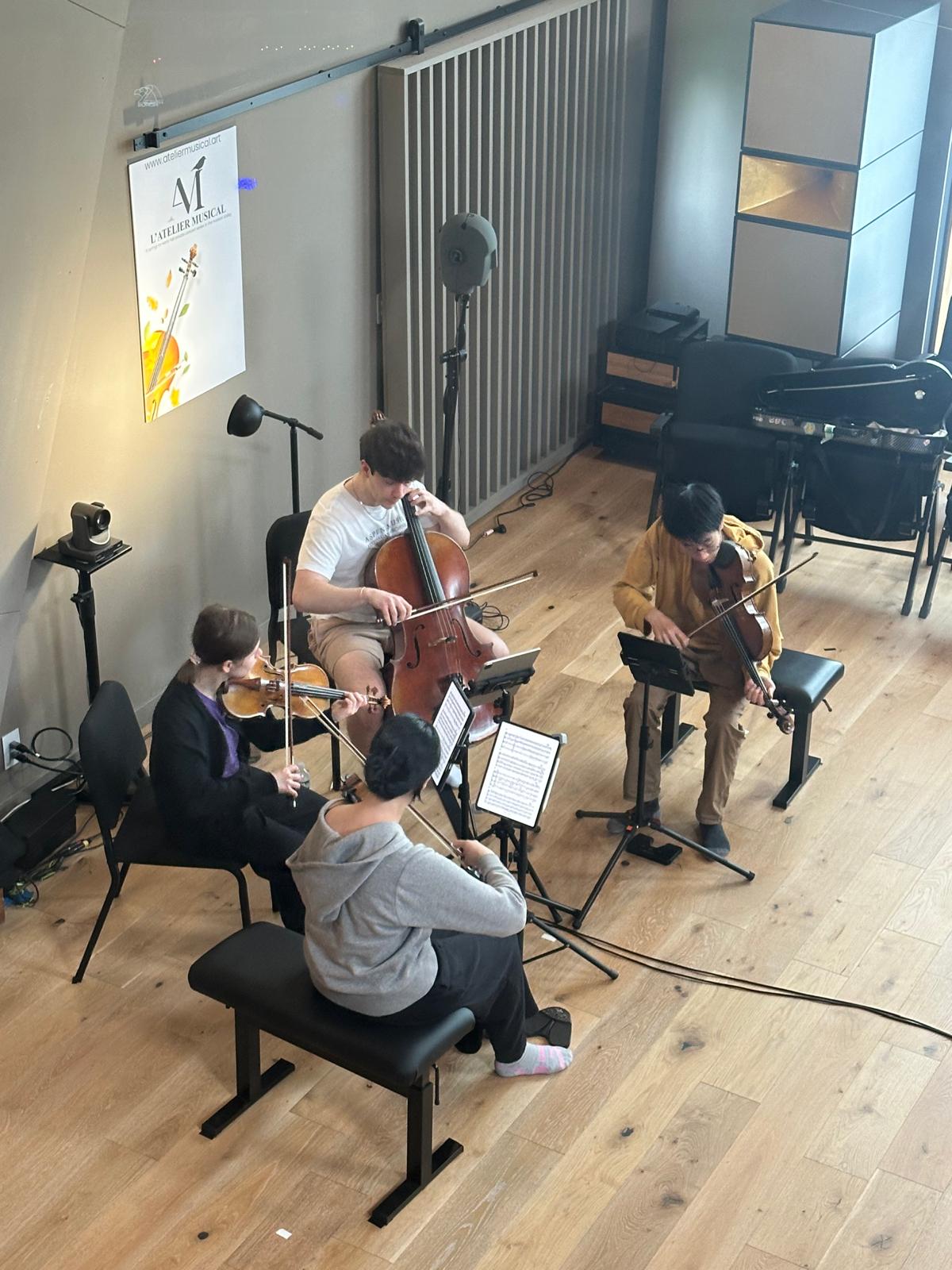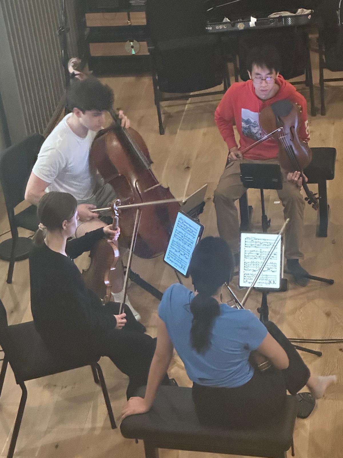Pictured left to right: Yu-Heng Wang, viola I Ava Kenney, violin I Ashley Tsai, violin I Eric Schindler, cello